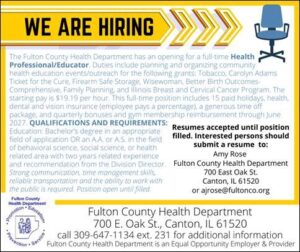 “The Fulton County Health Corporation” (I-CARE, Inc.) is a locally driven collaboration to increase the capacity of the Fulton County Health Department’s programs and services to meet the needs of local residents.”